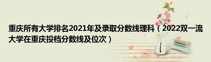 大家好,小高來為大家解答以上問題。重慶所有大學(xué)排名2021年及錄取分?jǐn)?shù)線理科,2022雙一流大學(xué)在重慶投檔分?jǐn)?shù)線及位次很多人還不知道,現(xiàn)在讓我們一起來看看吧!