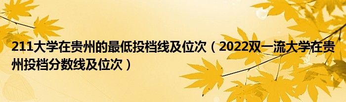 大家好,小高來為大家解答以上問題。211大學(xué)在貴州的最低投檔線及位次,2022雙一流大學(xué)在貴州投檔分?jǐn)?shù)線及位次很多人還不知道,現(xiàn)在讓我們一起來看看吧!