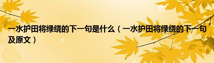 大家好,小高來為大家解答以上問題。一水護(hù)田將綠繞的下一句是什么,一水護(hù)田將綠繞的下一句及原文很多人還不知道,現(xiàn)在讓我們一起來看看吧!