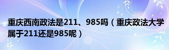 大家好,小高來(lái)為大家解答以上問(wèn)題。重慶西南政法是211、985嗎,重慶政法大學(xué)屬于211還是985呢很多人還不知道,現(xiàn)在讓我們一起來(lái)看看吧!