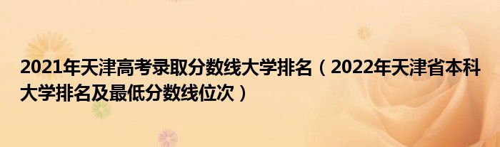 大家好,小高來為大家解答以上問題。2021年天津高考錄取分數(shù)線大學排名,2022年天津省本科大學排名及最低分數(shù)線位次很多人還不知道,現(xiàn)在讓我們一起來看看吧!