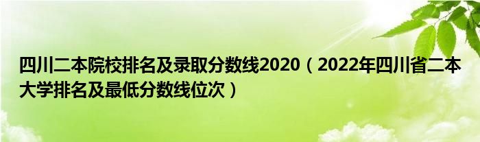 大家好,小高來為大家解答以上問題。四川二本院校排名及錄取分?jǐn)?shù)線2020,2022年四川省二本大學(xué)排名及最低分?jǐn)?shù)線位次很多人還不知道,現(xiàn)在讓我們一起來看看吧!