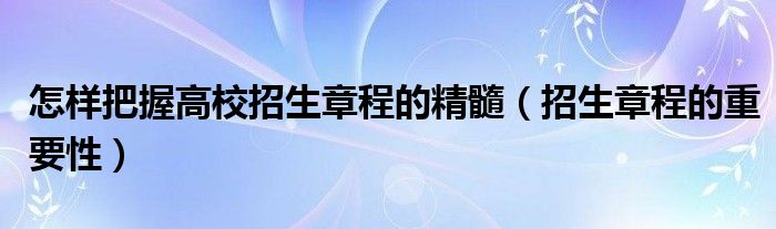 大家好,小高來為大家解答以上問題。怎樣把握高校招生章程的精髓,招生章程的重要性很多人還不知道,現(xiàn)在讓我們一起來看看吧!