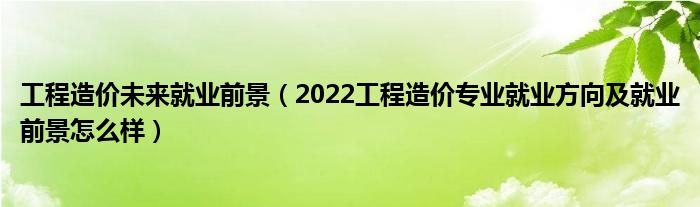 大家好,小高來為大家解答以上問題。工程造價(jià)未來就業(yè)前景,2022工程造價(jià)專業(yè)就業(yè)方向及就業(yè)前景怎么樣很多人還不知道,現(xiàn)在讓我們一起來看看吧!