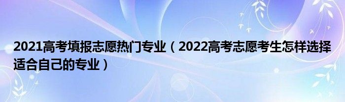 大家好,小高來為大家解答以上問題。2021高考填報志愿熱門專業(yè),2022高考志愿考生怎樣選擇適合自己的專業(yè)很多人還不知道,現(xiàn)在讓我們一起來看看吧!