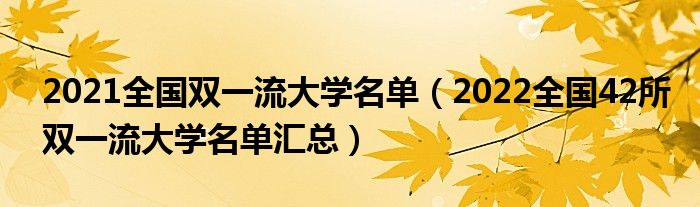 大家好,小高來為大家解答以上問題。2021全國雙一流大學(xué)名單,2022全國42所雙一流大學(xué)名單匯總很多人還不知道,現(xiàn)在讓我們一起來看看吧!