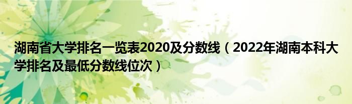 一、湖南本科大學(xué)排名及最低分數(shù)線位次