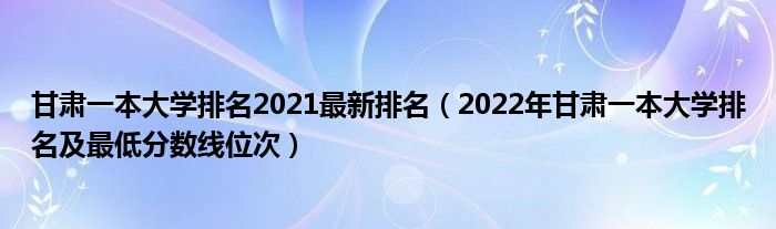 大家好,小高來為大家解答以上問題。甘肅一本大學(xué)排名2021最新排名,2022年甘肅一本大學(xué)排名及最低分數(shù)線位次很多人還不知道,現(xiàn)在讓我們一起來看看吧!
