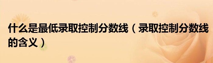 大家好,小高來(lái)為大家解答以上問(wèn)題。什么是最低錄取控制分?jǐn)?shù)線,錄取控制分?jǐn)?shù)線的含義很多人還不知道,現(xiàn)在讓我們一起來(lái)看看吧!