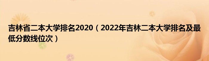大家好,小高來為大家解答以上問題。吉林省二本大學(xué)排名2020,2022年吉林二本大學(xué)排名及最低分數(shù)線位次很多人還不知道,現(xiàn)在讓我們一起來看看吧!