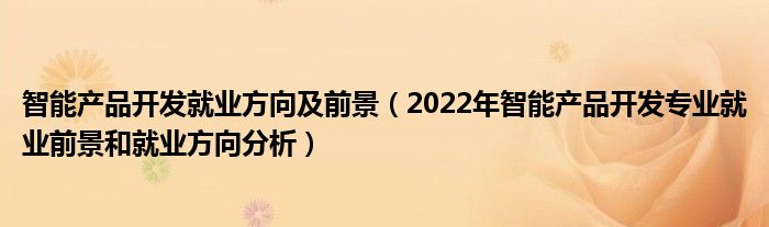 大家好,小高來為大家解答以上問題。智能產品開發(fā)就業(yè)方向及前景,2022年智能產品開發(fā)專業(yè)就業(yè)前景和就業(yè)方向分析很多人還不知道,現(xiàn)在讓我們一起來看看吧!