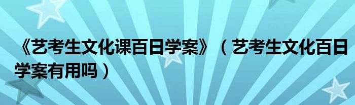 大家好,小高來為大家解答以上問題。《藝考生文化課百日學案》,藝考生文化百日學案有用嗎很多人還不知道,現(xiàn)在讓我們一起來看看吧!