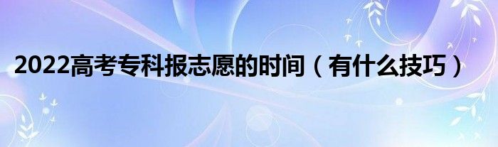 大家好,小高來為大家解答以上問題。2022高考??茍?bào)志愿的時(shí)間,有什么技巧很多人還不知道,現(xiàn)在讓我們一起來看看吧!