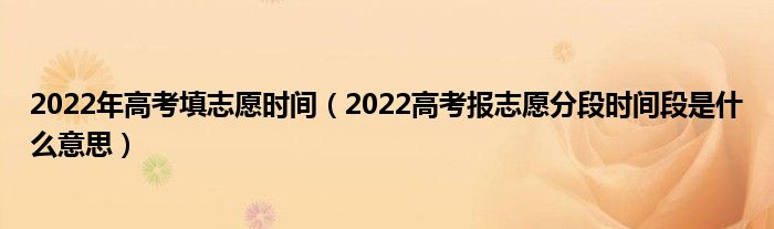 大家好,小高來(lái)為大家解答以上問(wèn)題。2022年高考填志愿時(shí)間,2022高考報(bào)志愿分段時(shí)間段是什么意思很多人還不知道,現(xiàn)在讓我們一起來(lái)看看吧!