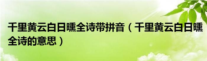 大家好,小高來為大家解答以上問題。千里黃云白日曛全詩帶拼音,千里黃云白日曛全詩的意思很多人還不知道,現(xiàn)在讓我們一起來看看吧!