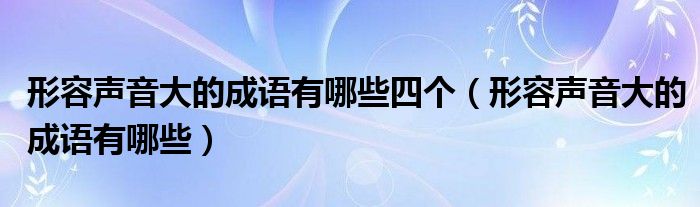 大家好,小高來為大家解答以上問題。形容聲音大的成語有哪些四個,形容聲音大的成語有哪些很多人還不知道,現(xiàn)在讓我們一起來看看吧!