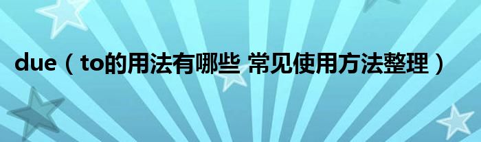 大家好,小高來為大家解答以上問題。due,to的用法有哪些 常見使用方法整理很多人還不知道,現(xiàn)在讓我們一起來看看吧!