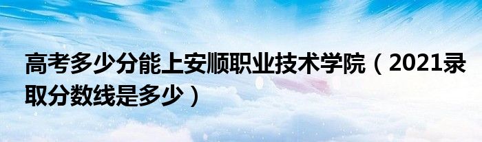 大家好,小高來為大家解答以上問題。高考多少分能上安順職業(yè)技術(shù)學(xué)院,2021錄取分?jǐn)?shù)線是多少很多人還不知道,現(xiàn)在讓我們一起來看看吧!