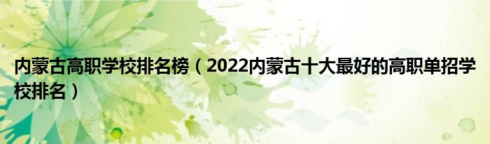 大家好,小高來為大家解答以上問題。內(nèi)蒙古高職學(xué)校排名榜,2022內(nèi)蒙古十大最好的高職單招學(xué)校排名很多人還不知道,現(xiàn)在讓我們一起來看看吧!