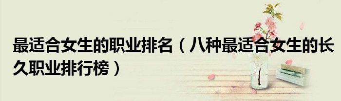 大家好,小高來為大家解答以上問題。最適合女生的職業(yè)排名,八種最適合女生的長久職業(yè)排行榜很多人還不知道,現(xiàn)在讓我們一起來看看吧!