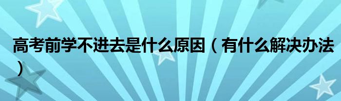 大家好,小高來為大家解答以上問題。高考前學不進去是什么原因,有什么解決辦法很多人還不知道,現(xiàn)在讓我們一起來看看吧!