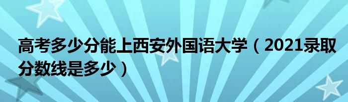 大家好,小高來(lái)為大家解答以上問(wèn)題。高考多少分能上西安外國(guó)語(yǔ)大學(xué),2021錄取分?jǐn)?shù)線是多少很多人還不知道,現(xiàn)在讓我們一起來(lái)看看吧!