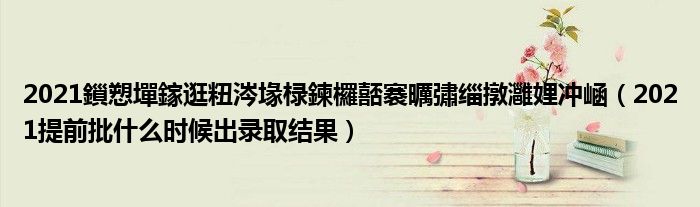 大家好,小高來為大家解答以上問題。2021鎻愬墠鎵逛粈涔堟椂鍊欏嚭褰曞彇緇撴灉娌沖崡,2021提前批什么時候出錄取結(jié)果很多人還不知道,現(xiàn)在讓我們一起來看看吧!