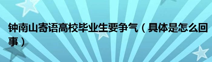 大家好,小高來為大家解答以上問題。鐘南山寄語高校畢業(yè)生要爭氣,具體是怎么回事很多人還不知道,現(xiàn)在讓我們一起來看看吧!