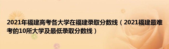 大家好,小高來(lái)為大家解答以上問(wèn)題。2021年福建高考各大學(xué)在福建錄取分?jǐn)?shù)線,2021福建最難考的10所大學(xué)及最低錄取分?jǐn)?shù)線很多人還不知道,現(xiàn)在讓我們一起來(lái)看看吧!