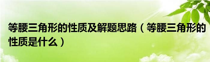 大家好,小高來為大家解答以上問題。等腰三角形的性質(zhì)及解題思路,等腰三角形的性質(zhì)是什么很多人還不知道,現(xiàn)在讓我們一起來看看吧!