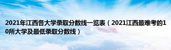 大家好,小高來(lái)為大家解答以上問(wèn)題。2021年江西各大學(xué)錄取分?jǐn)?shù)線(xiàn)一覽表,2021江西最難考的10所大學(xué)及最低錄取分?jǐn)?shù)線(xiàn)很多人還不知道,現(xiàn)在讓我們一起來(lái)看看吧!