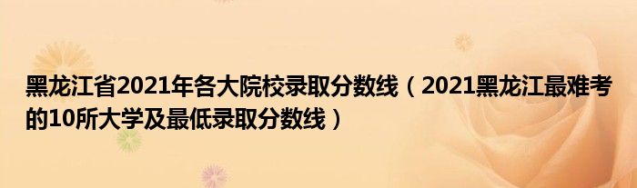 大家好,小高來為大家解答以上問題。黑龍江省2021年各大院校錄取分?jǐn)?shù)線,2021黑龍江最難考的10所大學(xué)及最低錄取分?jǐn)?shù)線很多人還不知道,現(xiàn)在讓我們一起來看看吧!