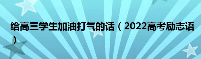 大家好,小高來(lái)為大家解答以上問(wèn)題。給高三學(xué)生加油打氣的話,2022高考勵(lì)志語(yǔ)很多人還不知道,現(xiàn)在讓我們一起來(lái)看看吧!