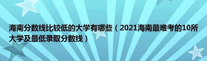 大家好,小高來為大家解答以上問題。海南分?jǐn)?shù)線比較低的大學(xué)有哪些,2021海南最難考的10所大學(xué)及最低錄取分?jǐn)?shù)線很多人還不知道,現(xiàn)在讓我們一起來看看吧!