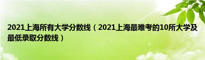 大家好,小高來為大家解答以上問題。2021上海所有大學分數線,2021上海最難考的10所大學及最低錄取分數線很多人還不知道,現在讓我們一起來看看吧!
