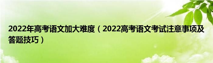 大家好,小高來(lái)為大家解答以上問(wèn)題。2022年高考語(yǔ)文加大難度,2022高考語(yǔ)文考試注意事項(xiàng)及答題技巧很多人還不知道,現(xiàn)在讓我們一起來(lái)看看吧!