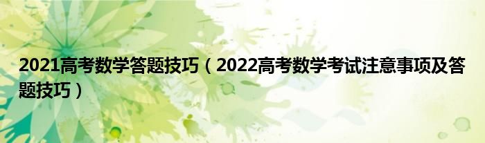大家好,小高來(lái)為大家解答以上問(wèn)題。2021高考數(shù)學(xué)答題技巧,2022高考數(shù)學(xué)考試注意事項(xiàng)及答題技巧很多人還不知道,現(xiàn)在讓我們一起來(lái)看看吧!