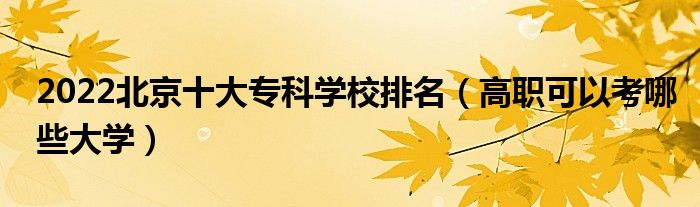 大家好,小高來為大家解答以上問題。2022北京十大??茖W(xué)校排名,高職可以考哪些大學(xué)很多人還不知道,現(xiàn)在讓我們一起來看看吧!