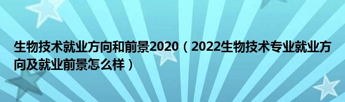 大家好,小高來為大家解答以上問題。生物技術(shù)就業(yè)方向和前景2020,2022生物技術(shù)專業(yè)就業(yè)方向及就業(yè)前景怎么樣很多人還不知道,現(xiàn)在讓我們一起來看看吧!