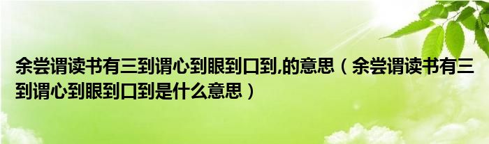 大家好,小高來為大家解答以上問題。余嘗謂讀書有三到謂心到眼到口到,的意思,余嘗謂讀書有三到謂心到眼到口到是什么意思很多人還不知道,現(xiàn)在讓我們一起來看看吧!