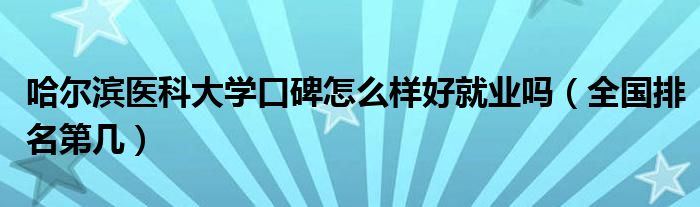 大家好,小高來為大家解答以上問題。哈爾濱醫(yī)科大學口碑怎么樣好就業(yè)嗎,全國排名第幾很多人還不知道,現(xiàn)在讓我們一起來看看吧!
