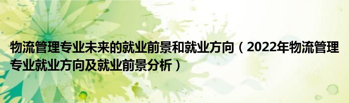 大家好,小高來為大家解答以上問題。物流管理專業(yè)未來的就業(yè)前景和就業(yè)方向,2022年物流管理專業(yè)就業(yè)方向及就業(yè)前景分析很多人還不知道,現(xiàn)在讓我們一起來看看吧!