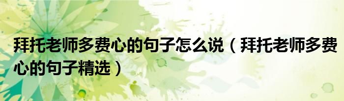 一、拜托老師多費(fèi)心的句子
