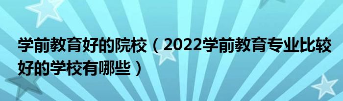 大家好,小高來為大家解答以上問題。學前教育好的院校,2022學前教育專業(yè)比較好的學校有哪些很多人還不知道,現(xiàn)在讓我們一起來看看吧!