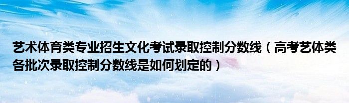 大家好,小高來為大家解答以上問題。藝術(shù)體育類專業(yè)招生文化考試錄取控制分?jǐn)?shù)線,高考藝體類各批次錄取控制分?jǐn)?shù)線是如何劃定的很多人還不知道,現(xiàn)在讓我們一起來看看吧!