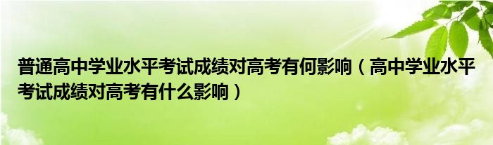 二、高中學(xué)業(yè)水平考試的成績(jī)有什么用