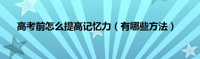大家好,小高來為大家解答以上問題。高考前怎么提高記憶力,有哪些方法很多人還不知道,現(xiàn)在讓我們一起來看看吧!