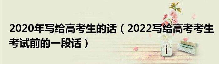 大家好,小高來為大家解答以上問題。2020年寫給高考生的話,2022寫給高考考生考試前的一段話很多人還不知道,現(xiàn)在讓我們一起來看看吧!
