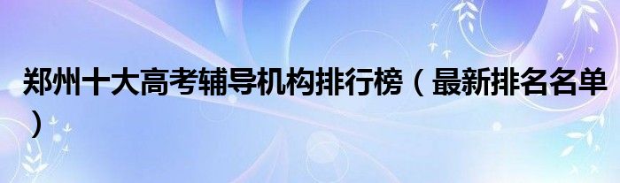 大家好,小高來為大家解答以上問題。鄭州十大高考輔導機構(gòu)排行榜,最新排名名單很多人還不知道,現(xiàn)在讓我們一起來看看吧!