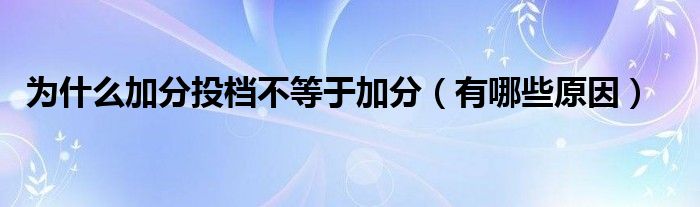 一、加分投檔不等于加分的原因